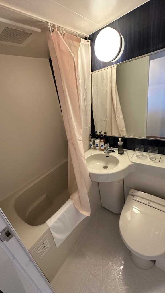 The room is quite small, measuring at 13m² (139 sq ft), right as you enter on the left is a small closet space followed by a full length mirror. Then there’s the toilet and bathroom combination, which is also a little bit more compact than the other hotels I stayed at, the lighting design made the bathroom dark and damp, during shower I had to open the blind slightly as I wasn’t able to see what I was doing in there.