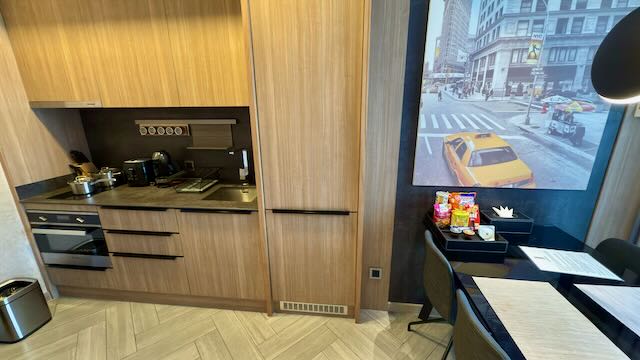 I booked the 1 bedroom apartment, from the entrance you’ll see the kitchen area. They provide all the utensils and pots for you to cook during your stay, but I couldn’t find any dishwashing liquid so I had to leave it in the sink for housekeeping to wash them. If you’re staying long term or even more than a week maybe it’s worth buying it yourself but for a few days and only cooking 2-3 times it’s not worth the hassle, and also this should be provided by the hotel if you’re going to be cooking, not expecting them to provide a big bottle of dishwashing liquid but at least a tiny bottle would suffice. They also have a big fridge for you to store your food. All minibar items are complimentary which is really nice to have. The toilet/bathroom is located on the left, it’s not very big but it’s decent enough.